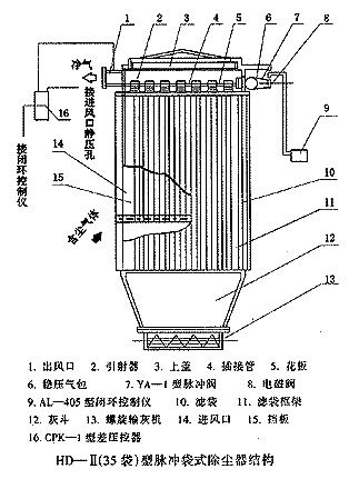 本機(jī)采取環(huán)隙噴吹原理,氣流引射量大,清灰效果好單機(jī)可以組合范圍2-12個單元。