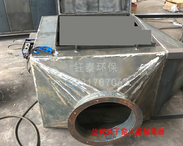 在處理蘭炭烘干窯廢氣的袋式除塵器中,爐子中的已燃粉塵有可能隨風(fēng)管氣流進(jìn)入箱體,而使堆積在濾布上的粉塵著火,造成事故。火星捕集器的作用是:爐氣和煙氣的出口、阻擋未燃盡火花的排出和大部分煙塵的外逸、保護(hù)后部袋式除塵器的濾袋。