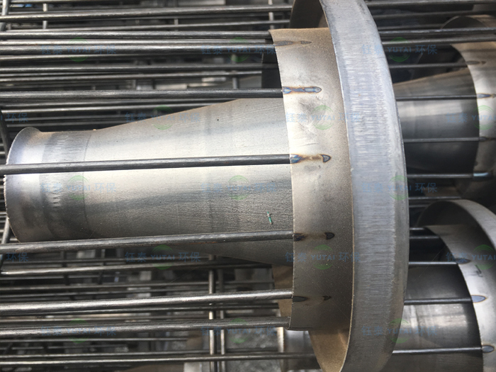 1、除塵器骨架采用圓型結構,袋籠的縱筋和反撐環(huán)分布均勻,并有足夠的強度和剛度,防止損壞和變形,頂部加裝冷沖壓短管,用于袋籠的垂直及保護濾袋口在噴吹時的磨損。