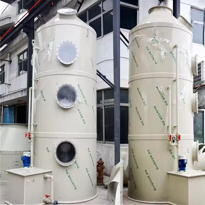 3.化學吸收劑從塔頂向下噴射,廢氣向上流動。廢氣與吸收液完全接觸,并通過反應除去。